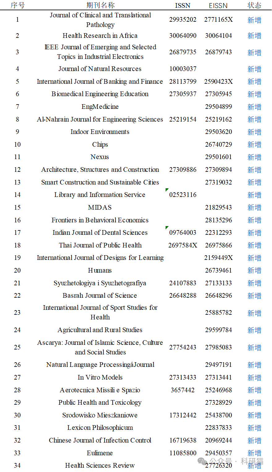 新增34本期刊名单