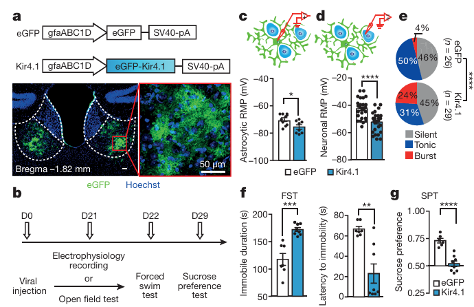 3. Nature,论文题目:Astroglial Kir4.1 in lateral habenula drives neuronal bursts in depression,揭示胶质细胞致抑郁机制,Kir4.1通道成干预新靶点