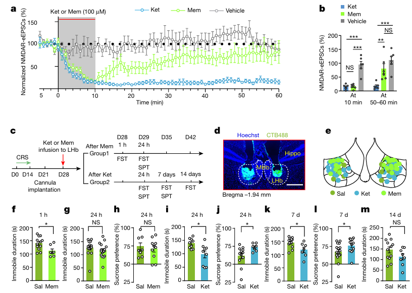 4. Nature,论文题目:Sustained antidepressant effect of ketamine through NMDAR trapping in the LHb,解析氯胺酮长效抗抑郁机制,NMDAR 滞留效应实现持久疗效
