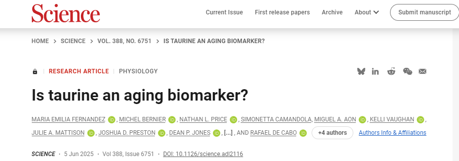 然而,2025年6月5日,美国国立卫生研究院国家老龄化研究所的研究团队在同一期刊发表了题为“Is taurine an aging biomarker?”的文章,直接质疑了2023年所发表文章的结论,对牛磺酸作为一种衰老生物标志物及其作为膳食补充剂的用途提出了疑问。