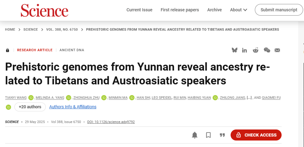 早在5月29日,付巧妹团队就在Science上发表了题为:Prehistoric genomes from Yunnan reveal ancestry related to Tibetans and Austroasiatic speakers的论文,捕获了来自云南17个遗址的距今7100年以上的127例古人类基因组。