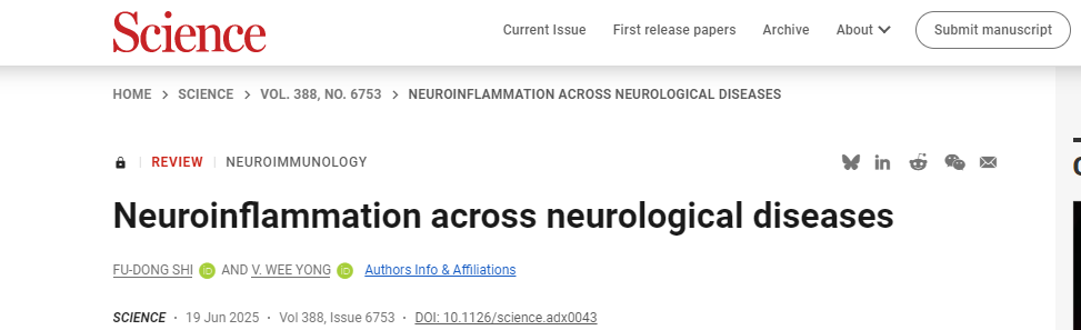 天坛医院 2025 首篇 Science 重磅出炉!施福东详解神经炎症
