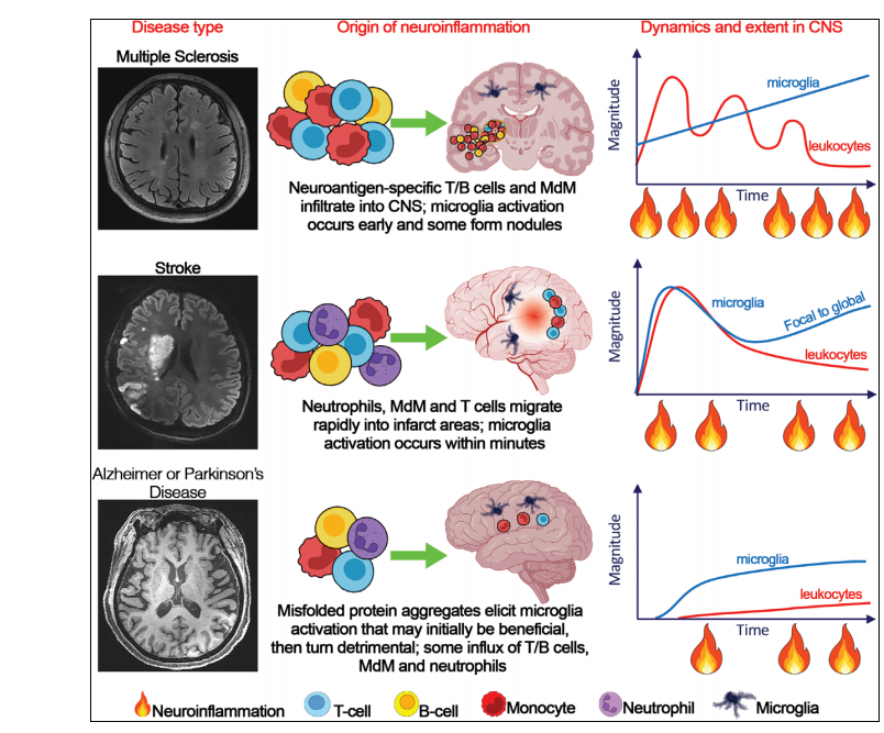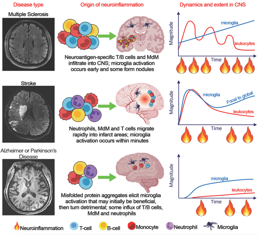 研究指出,从急性的中风到慢性的阿尔茨海默病,几乎所有神经系统疾病都存在神经炎症的身影。它不仅是疾病进展的“加速器”,更是导致患者残疾和认知衰退的核心原因之一。