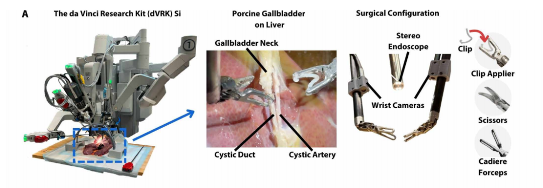 值得注意的是,SRT-H 并非从硬件层面完全创新,而是基于直觉外科公司的 da Vinci Si 手术机器人改装的 da Vinci Research Kit(dVRK)Si 双机械臂系统。